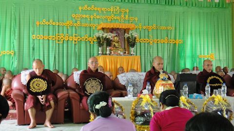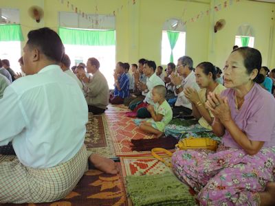 仏典朗誦が終わると、次は最高僧のありがたいお言葉をいただく。普通のミャンマー語で、諭すような高僧の言葉を、参加者のおじさん、おばさんたちは真剣に聞いている。時々高僧から問いかけがあり、参加者たちは口々に答える。