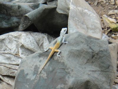 それほど大きくないが、例の上部がコバルトブルーのトカゲ |