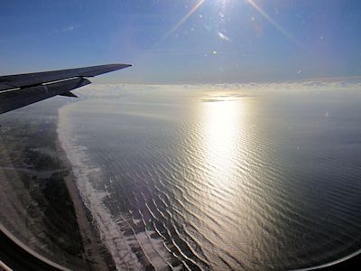 間もなく成田に到着。九十九里浜上空 |