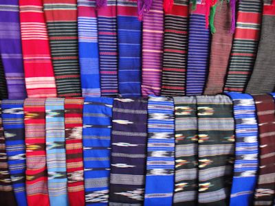 カレン州伝統のデザインをあしらった布地