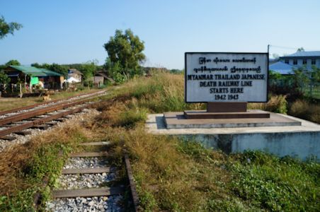途中、タンビュッザヤの街に寄る。ここは、太平洋戦争時、日本軍が建設した泰緬鉄道のミャンマー側の起点となった街である。泰緬鉄道は、タイとミャンマー(当時名称ビルマ)を結び、激戦となっていたビルマに、タイ側から物資や人員を送り、ビルマ戦線で発生した負傷者を後方のタイへ送っていた鉄道である。