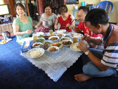 日曜日。我々の訓練学校の建設を数多く手がけてきた建設コントラクターのウピョンジーが、私を昼食に招いてくれた。あと2週間で私はパアンを去るので、送別の宴を開いてくれたのである。