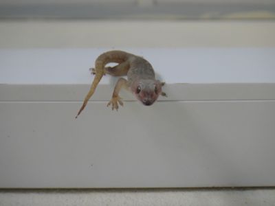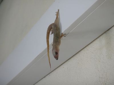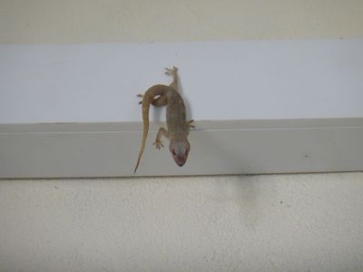 興奮して同僚のピピさんに知らせる。彼女も驚いた風だったが、すぐにほうきとちり取りを持ってきて、死んだヤモリを払い落して処分した。