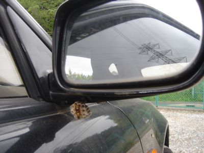 天皇陛下も愛するインテグラのドアミラーの下に蜂が巣を作った |