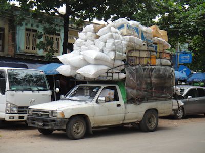 ミャンマーではこの程度の過積載はごく普通 |