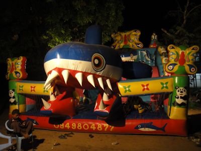 構内には、空気で膨らました人形のかたちをした巨大な子供遊び場がある。子供たちは11時を過ぎても元気にはしゃぎまわっている。