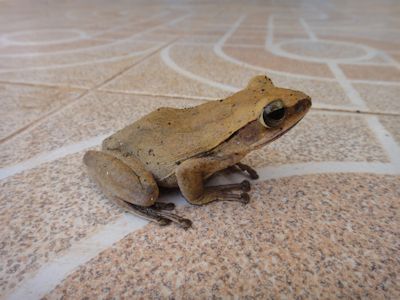 事務所の入口に現れたカエル。体調5cmほど。 |