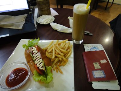 フライト時間は6時間ほどらしいが、夕食はなしで着陸前に朝食が出るらしい。そうなると飛行機で空腹となる可能性がある。とりあえず夕食を空港で食べることにする。がまたまた常軌を逸した空港内レストランの値段に唖然とさせられることになる。