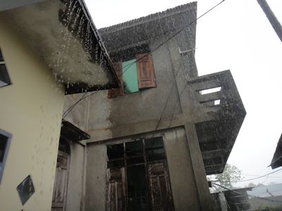 しばらくこの嵐のような激しさが続き、そして、やってきました、大雨が。スコールはあっという間に事務所の庭を水浸しにし、雨どいからは放水状に水が絶え間なく流れ落ちる。