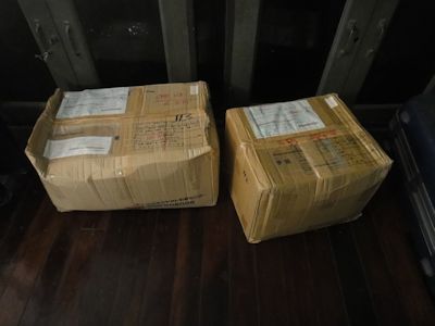 一昨日15日の木曜日、ついに私の荷物がヤンゴン事務所に届いた。2月26日に、千葉市内の郵便局から船便で送った、2つの段ボールである。ヤンゴンまでの所要日数は、2か月半。地球の裏側、南米エクアドルに送った船便は、5か月以上かかったから、半分か。東南アジアにしてはちょっと遅い気がするが。