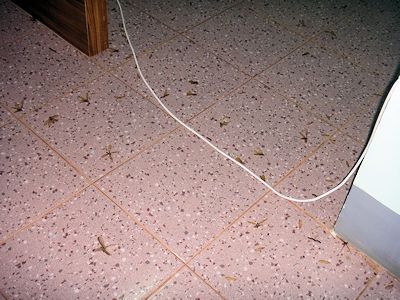 事務所の床に蠢く無数の羽虫 |