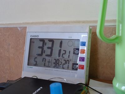 部屋の中の朝晩の最低室温は、これまた30℃は下回らない。