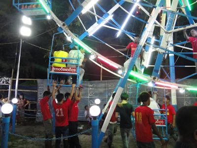 若者たちは、この祭りで出会いを求めているのだろうか?ミャンマー人もナンパするのかしら?見ていてもそういう気配は感じられないが、とにかく、男女とも、若者たちは気合を入れてこの祭りにやって来ているように見受けられる。