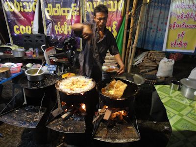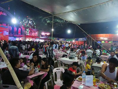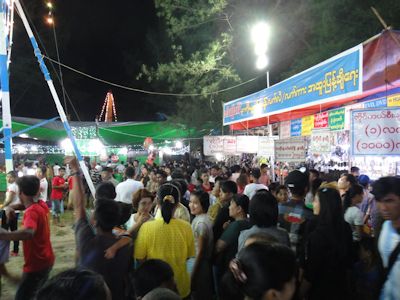 早速仕事が終わった後、夜この祭りに出かけてみた。会場は、州政府庁舎の横にある広場一帯である。数日前から広場および広場の周りは、祭りの準備が着々と進んでいくのが見て取れた。広場の一角にあるステージでは、カレン州民族舞踊のグループが、次から次へと登壇して飽きることなくリハーサルを続けていたし、広場の周りでは、次々に露店が立ち上がっていった。数日前からすでに営業していた店もあるほどだ。