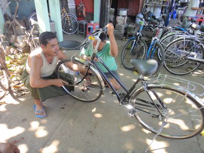 何台か試乗をしてみて、60,000チャット(約6、000円)で1台を買い求める。ちょっと高い気もしたが、まあ仕方あるまい。Sマノのハブダイナモと自動点灯ライト、3段変速ギアを備えたなかなか良い自転車である。ま、いうてもママチャリやけど。