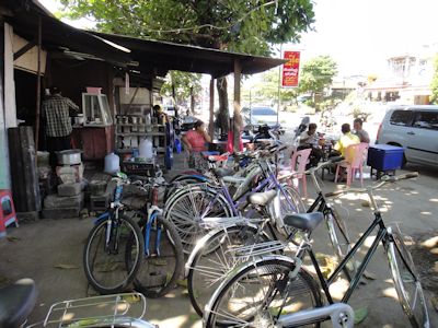 そして今日は、ついに意を決し、自転車を買うことにした。同僚のポネイとイェトゥエナウンと一緒に、パアン市内の自転車屋を見て回る。
