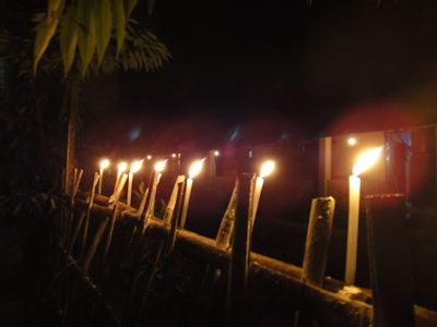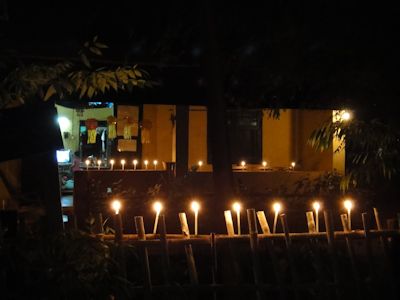 パアンでは提灯は上がらず、花火が上がっている。そして、家々では軒先に火を灯したロウソクにをたくさん立てる。夜、ロウソクの火が、幻想的にユラユラと揺らめいている。やはり日本のお盆を思い出させる。
