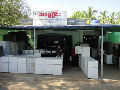 パアンの街には、日本の中古家電製品を売る店が数件ある。これらの店では、タイ経由で日本の中古品を仕入れて売っているのである。タイからの物流がモノを言う当地ならではのビジネスであろう(カレン州は、タイ国境に位置する)。さすがに日本製品の品質の高さは知られているらしく、中国製の新品よりも日本製の中古、という認識は、ここミャンマーでも物の価値が分かる人なら分かっているのだろう。