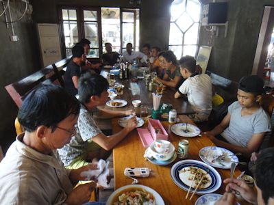 レストランに行ってみると、自動車整備科第2期の卒業生が7,8人と第1期卒業生が1人集結していた。奴らの何人かは、昨日のウチョウミョウウの結婚式に出ていた。そのままパアンに移動してきて、近くに住んでいる同級生と連絡を取り合って、この同窓会が開催の運びとなったのだろう。