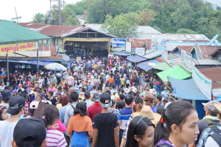 途中で料金所のようなところでトラックは停まり、集金員がトラックの荷台に上がって来て、集金する。一人2000チャット(約200円)。ミャンマーの物価からすればバカ高だ。しかも帰りにもこの2000チャットが取られるのである。往復4000チャット。まさにこれしか交通機関がないことをいいことに、典型的なボッタくり。
