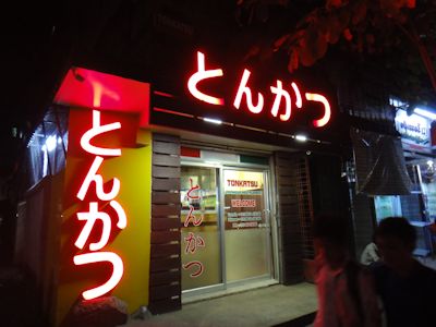 その名も『とんかつ』という店。店の外観は、「とんかつ」というひらがなが赤く大きく光っていて、ミャンマー人から見たら異彩の文字である。