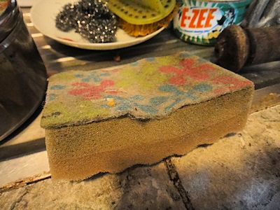 食器洗い用スポンジ。上の部分が1週間ほどではがれる |