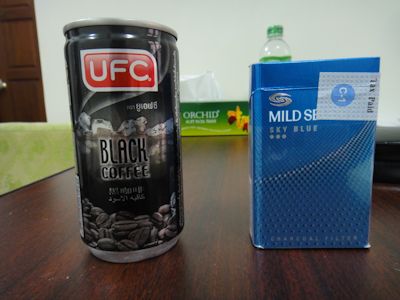 さて、右写真は、先日ヤンゴンで飲んだ缶コーヒーである。まずブランド名が「UFC」というところでニヤッと笑う。そして、「BLACK COFFEE」なんて書いてあるものだから、「えっ、東南アジアでブラックなんてあり得るのか?」と買わないわけにはいかなくなった。