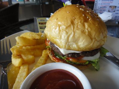 雨やどり場から自転車で数分、パアンの中心部、時計台の近くに、新しくできたハンバーガー店があるというので行ってみた。以前パアンにはこの近くに1軒のハンバーガー屋があったが、いつの間にか店じまいしてしまった。