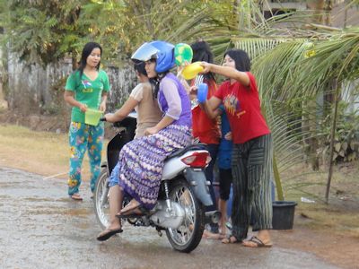ところで、バイクを乗っている人々を観察するのはなかなか楽しい。特に女の子。カップルであれ女性同士であれ、後部座席に乗る女性の多くは、いわゆる「お姫様座り」で乗っている。下品に股を広げて座席にまたがるのではなく、片側に向いて両足を揃え、椅子に座るように乗るのである。そもそも、ロンジーを履いている人たちは、バイクや自転車というものにまたがるのはその構造上不得手である。ロンジーとは、足もとまである、ぴっちりしたロングドレスのようなものである。股を開けと言っても無理な相談だ。(ただパアンでも若い女の子たちは、ロンジーではなくスカートやジーンズをはいている人が多くなってきている)