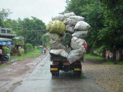 ミャンマーでは、車やトラックへの荷物積載量がおかしい (パアン)