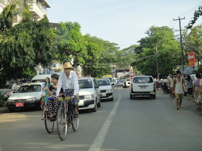 ヤンゴンと違い、地方都市では車が多くないので、サイカーが道を走っていてもそれほど危険な感じはしない。