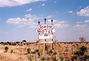| ROSWELL ロズウェル 今NHKで海外ドラマとしてオンエア中の「ロズウェル」の舞台の街です。終戦直後1947年の「ロズウェル事件」で、「UFOが墜落した街」として世界中に知られています。街にはUFOショップがありました。この街を通りかかったとき、ロズウェルのことを知らなかったので、こんな平凡な写真しか撮りませんでした。 |