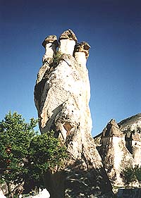 トルコがイスラム教勢力に支配される前、3〜4世紀頃から、キリスト教修道士達がこの地に入植したという。このキノコのかさ部分に部屋を造り、修行をしていた。