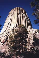 面に彫ったもので、誰でも一度はTV等で見たことがあるだろう。さらにワイオミング州に入り、映画「未知との遭遇」の冒頭でUFOが舞い下りたシーンに使われた、デビルズタワー国立記念碑へ。これまた自然の驚異だ。