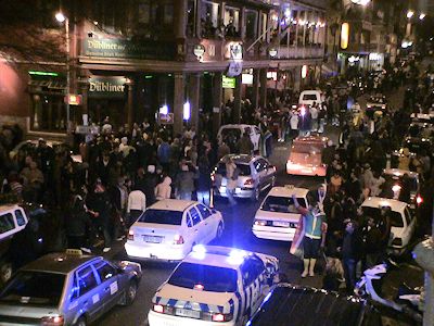 ハーフタイム。目抜き通りのロングストリートは大騒ぎとなる。