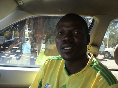 僕を空港から街まで連れてきたタクシードライバーのドゥミサニは、律儀にも朝10時半にレストキャンプに来ていた。「帰りも空港まで連れていく」って主張した運ちゃんは今までの旅で何人もいた気がするが、本当に現れたのは奴が初めてじゃなかろうか。