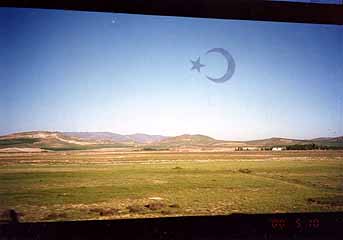 アンカラを発ったバスは、すぐに緑褐色の穏やかな丘が続く風景の中を走り始める。アナトリア高原のど真ん中。途中ところどころで小さな街があり、その中を縫って走ると、必ずモスクが見える。キリスト教世界の教会と同じで、どんな小さな街にもモスクがある。丸いドーム型の屋根と鋭く高い尖塔は、一番初めに目に飛び込んでくる建造物だ。