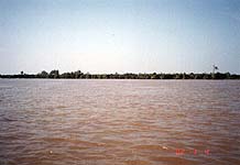 ミトーは、メコンクルーズ拠点の街として活気がある。我々は、早速小型ボートに乗り込み、メコン川に繰り出した。茶色に濁った広大な川。ベトナムは、この川の恵みを目いっぱい受けている。豊かな水産物。名物・象耳魚を始めとする魚類、それとえび。(メコン川の風景)