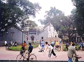 ホテルからすぐのところに、ハノイの象徴・ホアンキエム湖が広がる。朝からおじさんやおばさんがバドミントンに興じている。ちょっとした公園にバドミントンのコートがあり、ネットを張って本格的にやっているのだ。しかも歳の割にはかなり上手い。バドミントンが人気スポーツであることが分かる。東南アジアではどこでもそうだが。私は大のバドミントン好きなので、仲間に入ってやりたいくらいであった。